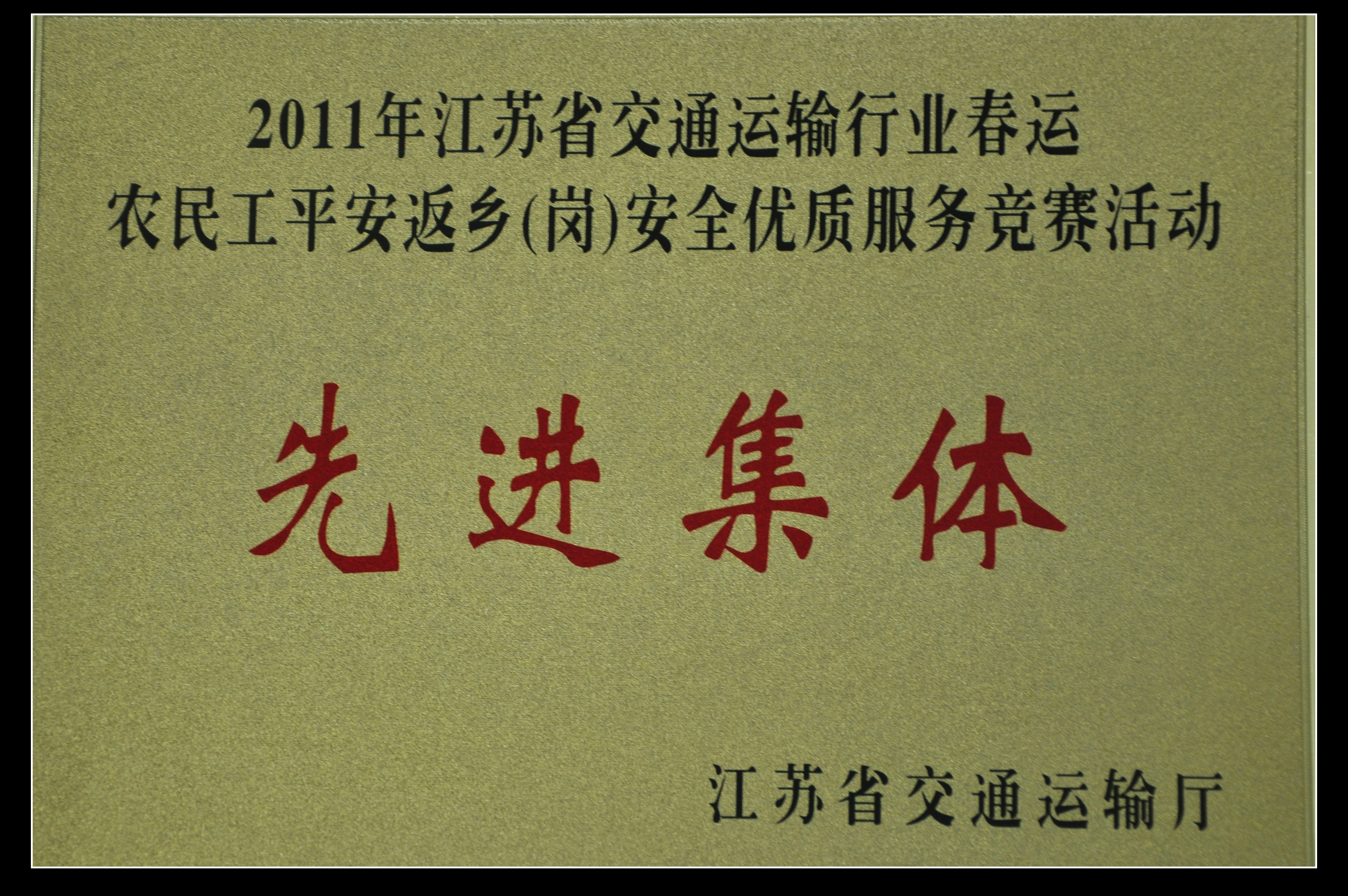 集團(tuán)公司獲2011年江蘇省交通運(yùn)輸行業(yè)春運(yùn)農(nóng)民工平安返鄉(xiāng)(崗)安全優(yōu)質(zhì)服務(wù)競(jìng)賽活動(dòng)先
