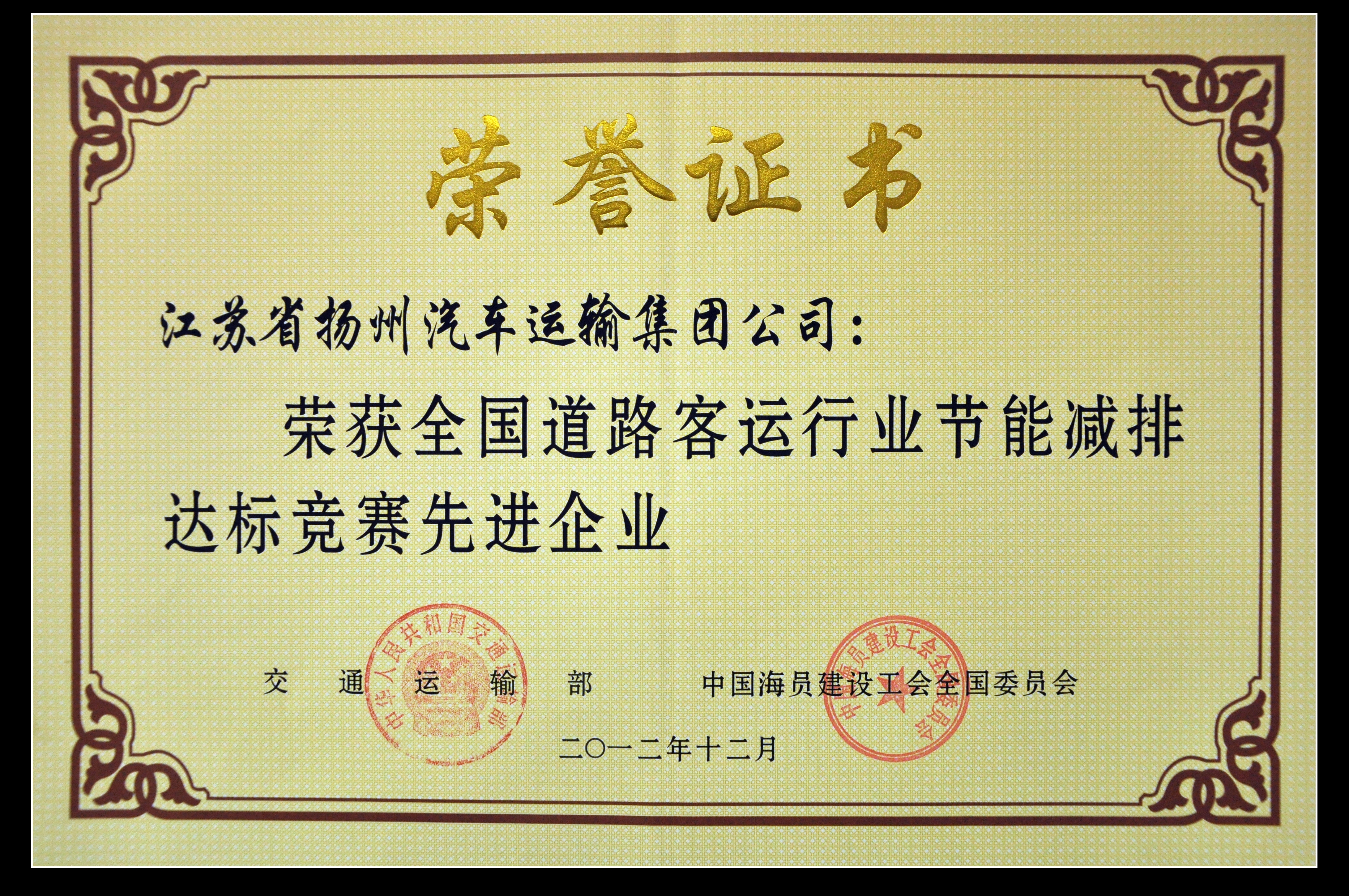 我司榮獲“全國(guó)道路客運(yùn)行業(yè)節(jié)能減排達(dá)標(biāo)競(jìng)賽先進(jìn)企業(yè)”稱(chēng)號(hào)