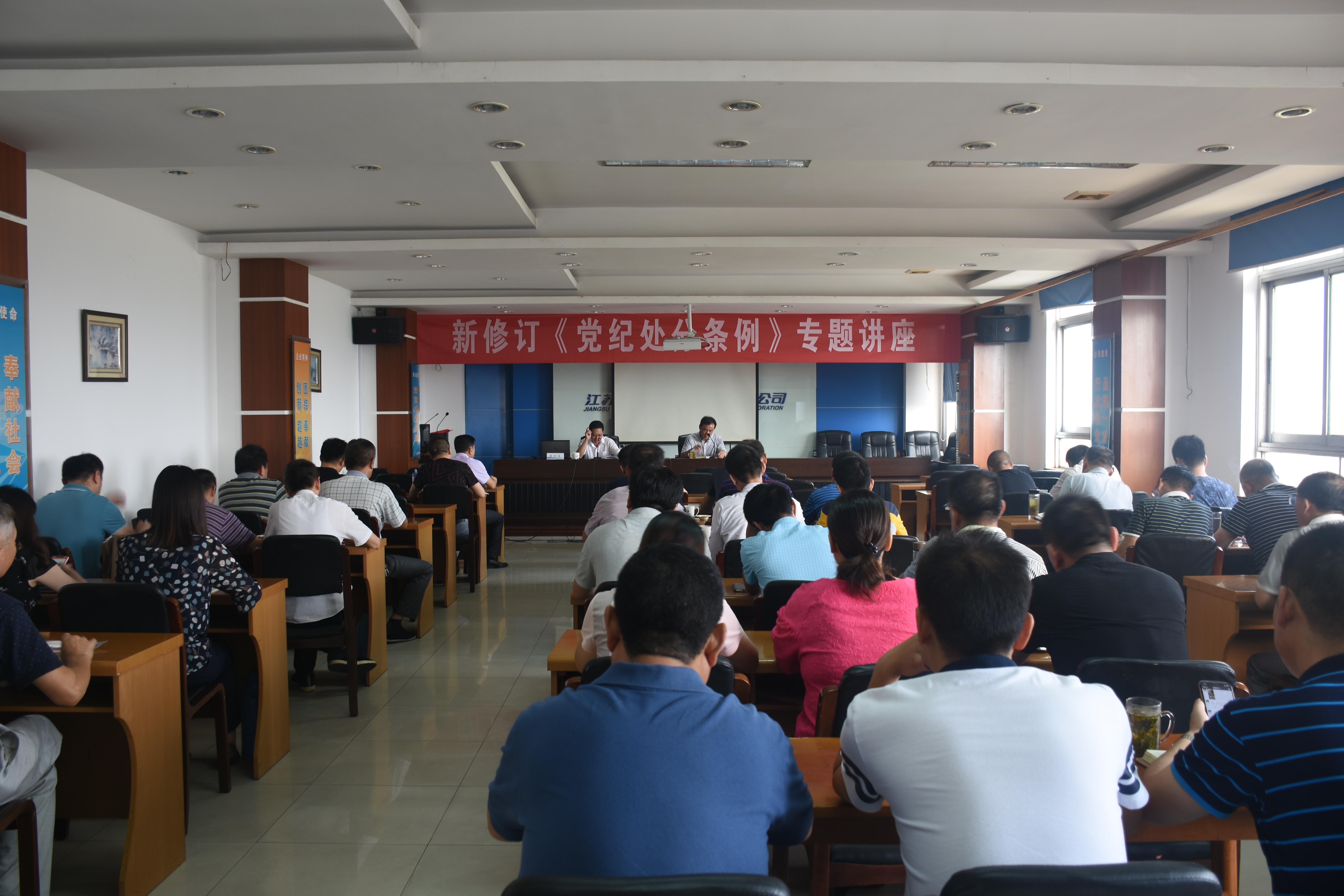 9月19日上午,集團(tuán)公司邀請市紀(jì)委監(jiān)委第十紀(jì)檢監(jiān)察組陳世信書記對于新修訂的《中國共產(chǎn)黨紀(jì)律處分條例》進(jìn)行解讀。市交通產(chǎn)業(yè)集團(tuán)副總經(jīng)理兼揚汽集團(tuán)黨委書記、董事長、總經(jīng)理曹遠(yuǎn)志,黨委副書記顧懷,副總經(jīng)理談衛(wèi)國、陳家宏、張金明以及集團(tuán)公司中層干部及處室黨員參加了專題講座。