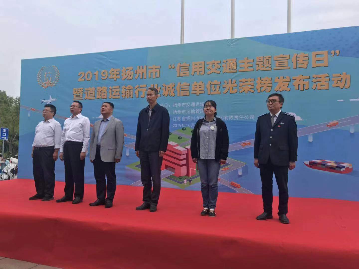 為加強(qiáng)信用信息管理,樹(shù)立交通運(yùn)輸行業(yè)誠(chéng)信標(biāo)桿,10月11日下午2:30,揚(yáng)州市“信用交通主題宣傳日”暨道路運(yùn)輸行業(yè)誠(chéng)信單位光榮榜發(fā)布活動(dòng)在西部客運(yùn)樞紐汽車站站前廣場(chǎng)舉行。