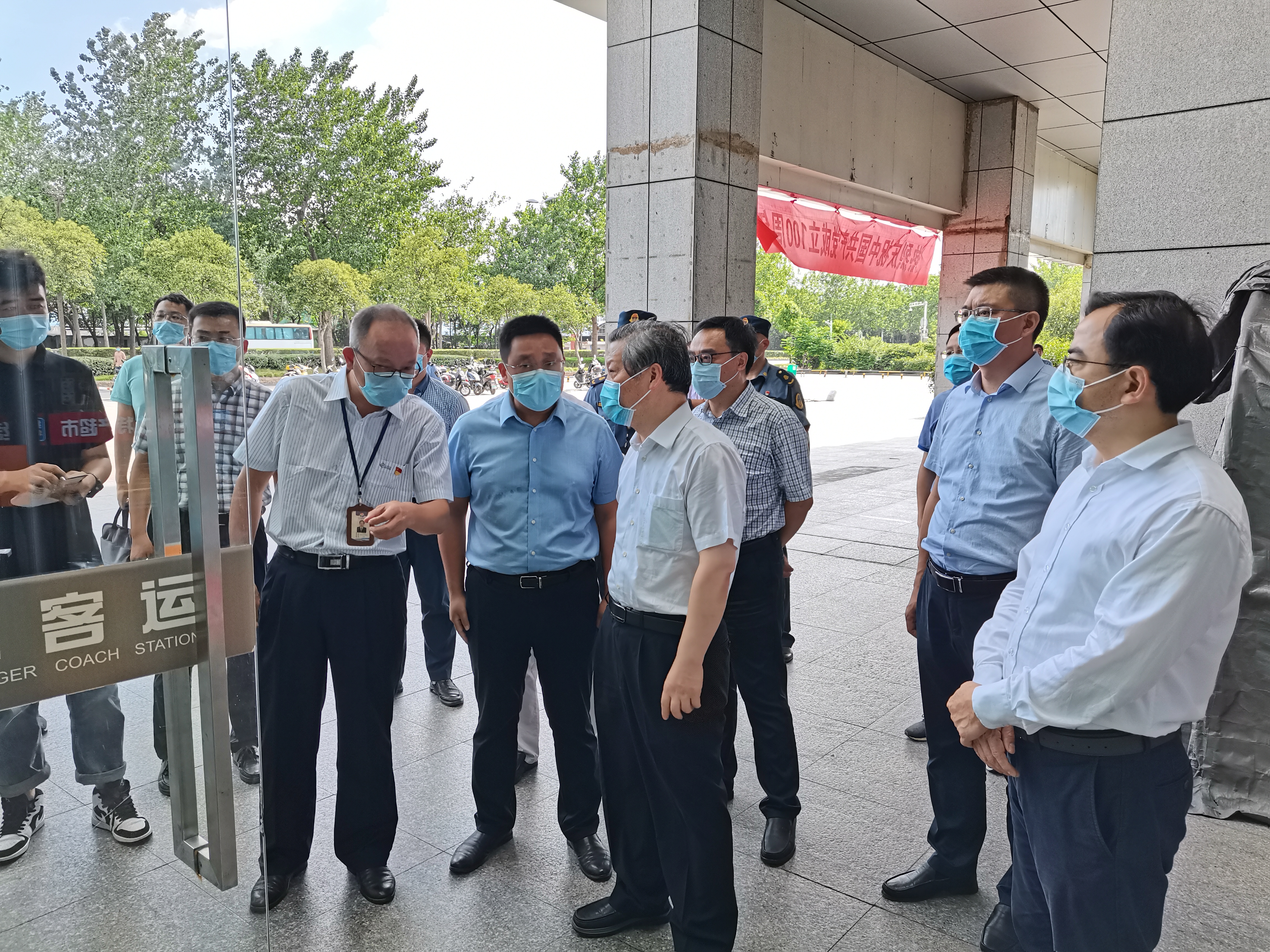 7月23日下午,市委副書記、統(tǒng)戰(zhàn)部部長孔令俊帶隊來汽車東站檢查疫情防控工作,市人大常委會副主任范天恩、廣陵區(qū)委書記朱勇、區(qū)委副書記李斌、副區(qū)長葉浩等領(lǐng)導(dǎo)陪同檢查。