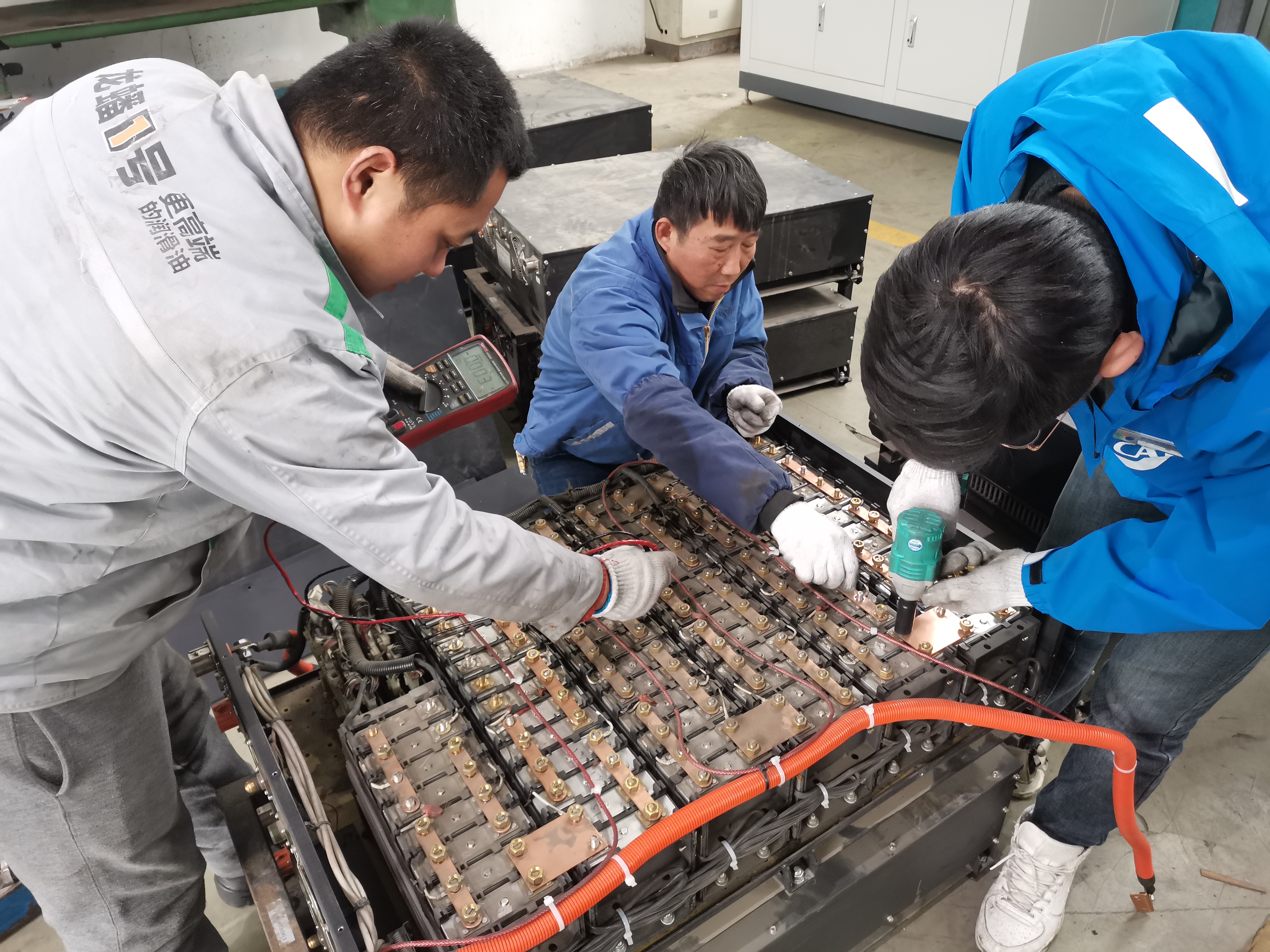 整改期間,修理廠高度重視,積極推進(jìn)隊伍建設(shè),組織技術(shù)中心六名骨干人員,采用兩人一組,“老手”帶“新手”的模式,分批前往亞星裝配車間。后期,雙方為加快推進(jìn)項目整改進(jìn)度,亞星直接將這批動力電池發(fā)運到修理廠,修理廠以熟練的箱體拆解、單體檢測、二次篩選、補電維護等系列流程進(jìn)行維護。