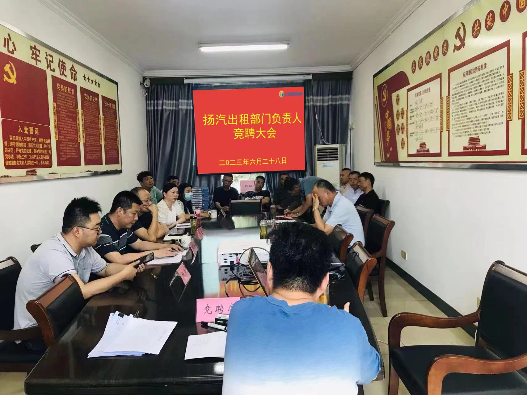 為進(jìn)一步發(fā)揮黨建引領(lǐng)作用,推動(dòng)企業(yè)高質(zhì)量發(fā)展,加大選拔培養(yǎng)管理人才隊(duì)伍建設(shè)力度,6月28日上午,揚(yáng)汽出租組織開展部門負(fù)責(zé)人競(jìng)聘會(huì),揚(yáng)汽集團(tuán)副總經(jīng)理徐建波、黨群工作部、人力資源部、安全機(jī)務(wù)部、經(jīng)營(yíng)發(fā)展部及揚(yáng)汽出租相關(guān)負(fù)責(zé)人參加會(huì)議。